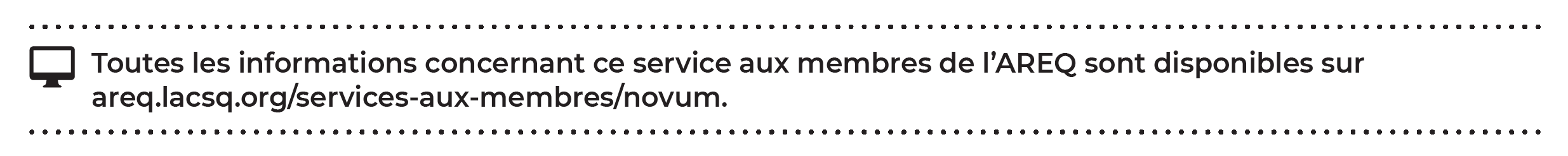 L’entente de partenariat avec la firme Novum, dont ont bénéficié plusieurs centaines de membres de l’AREQ au cours des cinq dernières années, vient d’être renouvelée jusqu’en juillet 2027. Elle permettra à nos membres qui sont aux prises avec des tracas juridiques de bénéficier d’un service accessible, professionnel et personnalisé.