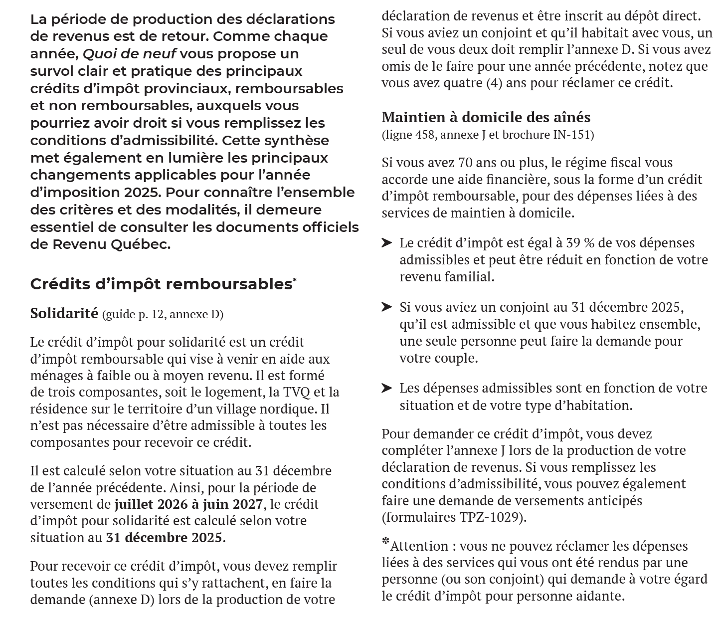 Crédits d’impôt provinciaux 2025 – Ce qu’il faut savoir au moment de produire votre déclaration